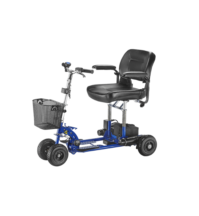 Available models of lightweight, portable mobility scooters.Standard, Heavy duty, Heavy Duty Sport, Sumo.